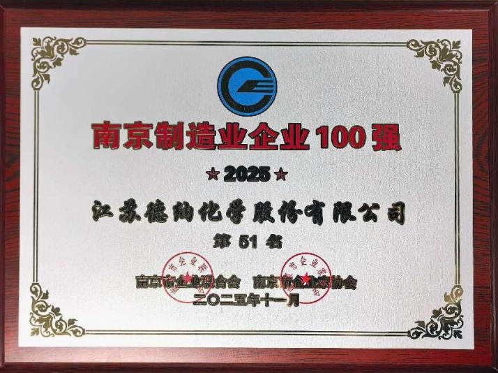 On November 13th, the Nanjing Enterprise Federation and Nanjing Entrepreneurs Association officially released the list of the top 100 manufacturing enterprises in Nanjing for 2025. Dynamic Chemical, with its outstanding comprehensive strength and continuous innovation investment, was once again selected for the authoritative list, ranking 51st.